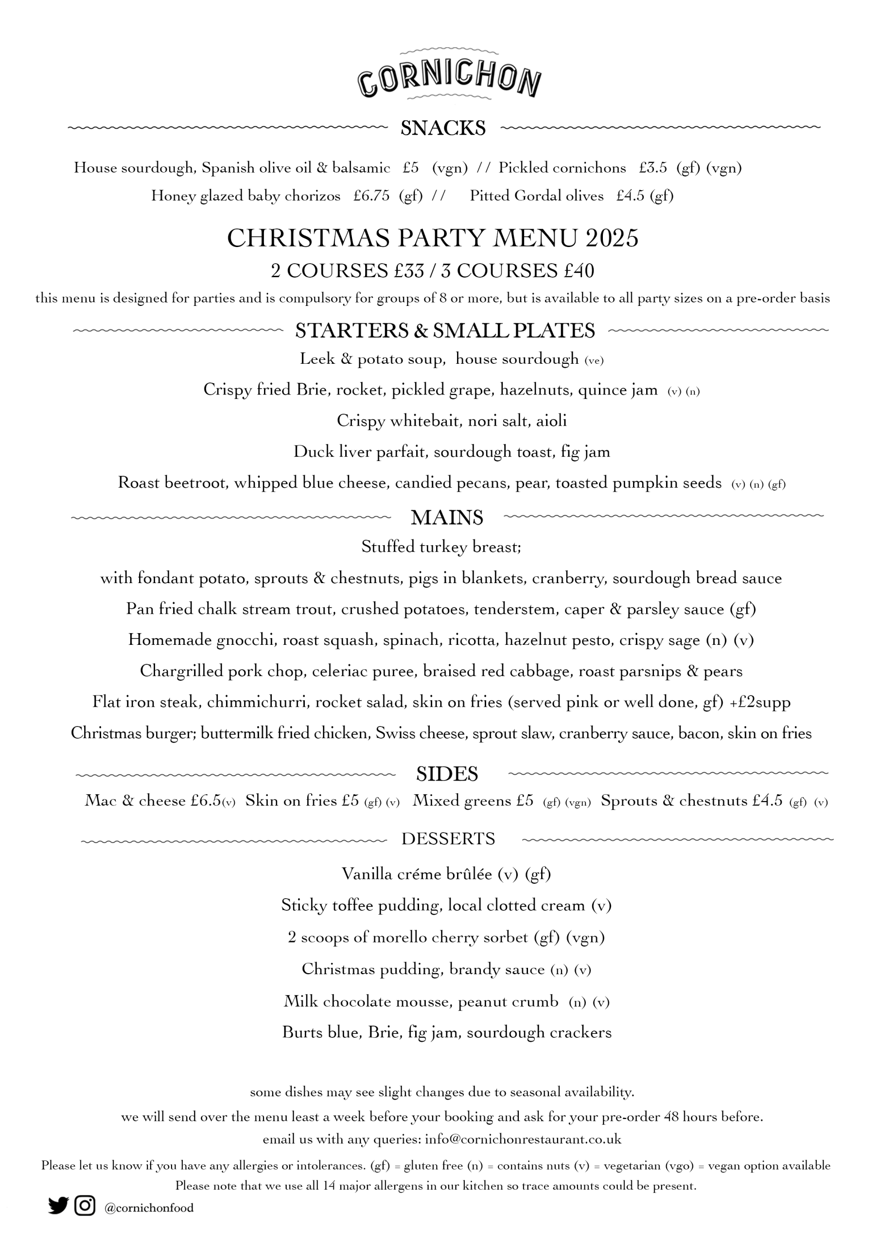 If you wish to enquire about an event, drop us an email on: bookings@cornichonrestaurant.co.uk. Please be patient with replies, especially if your event isn’t within the current month.